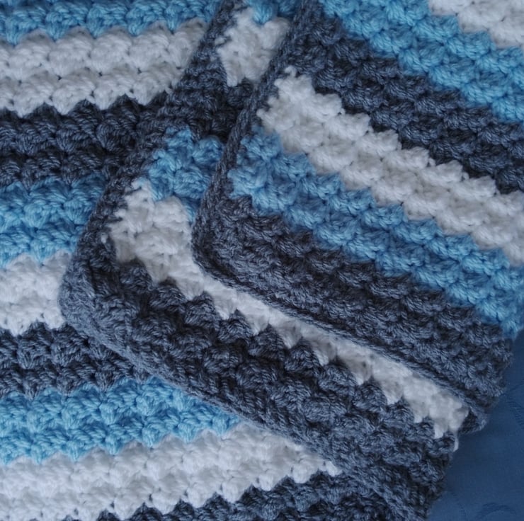 Measures 24 x 32 inches an ideal pram or cuddle blanket size, would make a beautiful Baby Shower or New Birth gift