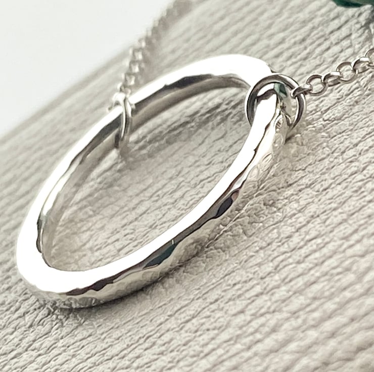 This sterling silver hammered open circle necklace is a simple design that has a beautiful sparkle.