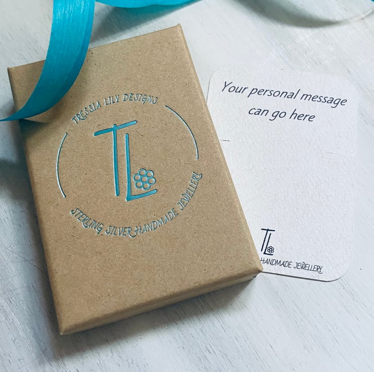 Your necklace will come packaged in a branded gift box and you can choose to add a personal message inside the box making it all ready for giving as a gift. If you would like to add a message just let me know and I will be happy to do his for you.