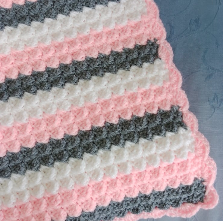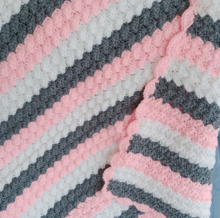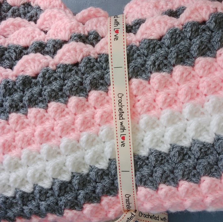 Measures 24 x 30 inch approx would make a Beautiful Pram or Cuddle Blanket, an Ideal Baby Shower or New Birth Gift