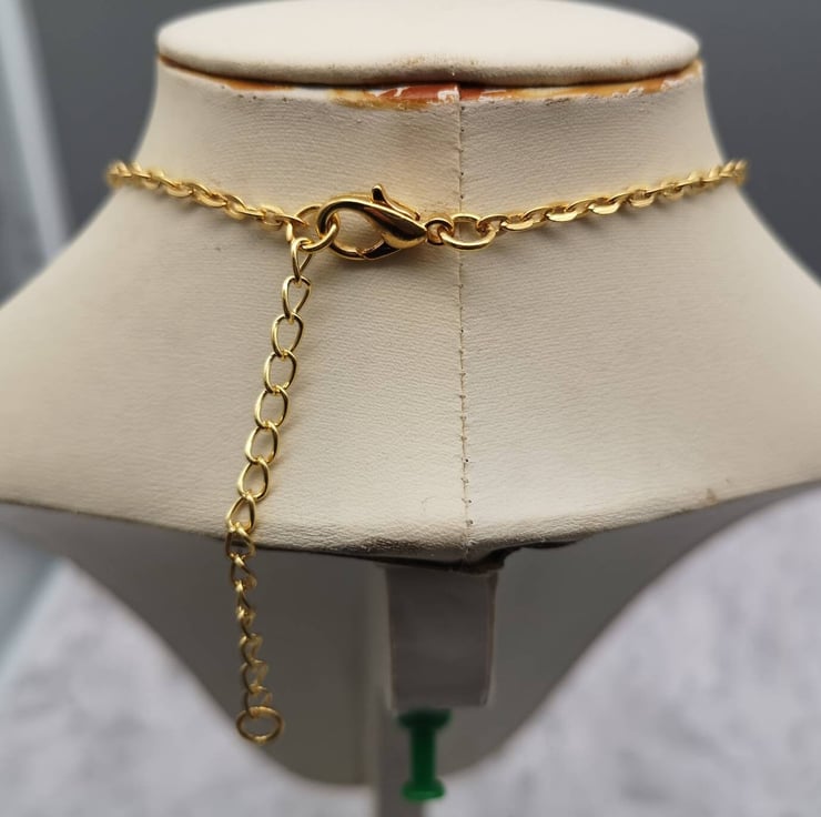 This necklace has a gold plated copper lobster claw clasp. This is perfect to wear as a layering necklace as it could be worn with shorter or longer length necklaces. It would look beautiful with a maxi dress in summer while you're on a beach, or even over a chunky jumper during the colder seasons.
