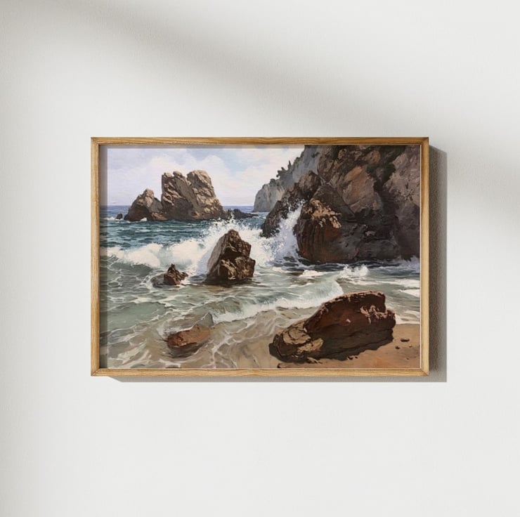 Ideal for lovers of ocean scenes, maritime decor, or coastal landscapes, this piece brings the essence of the sea indoors. The painting’s earthy tones and cool blues create a relaxing yet powerful atmosphere, making it a perfect statement piece for living rooms, offices, or beach houses.