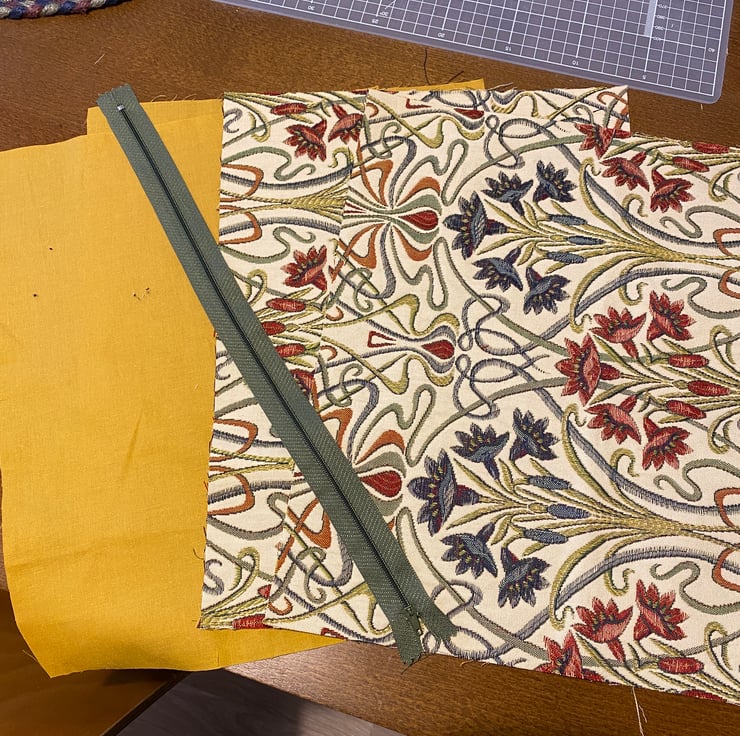 I salvaged the outer fabric from Vinted and managed to get 6 beautiful and identical panels. The cotton lining was from a Manchester haberdashery, and the zip from a market in Durham!