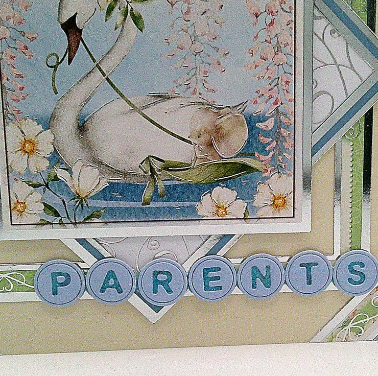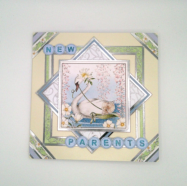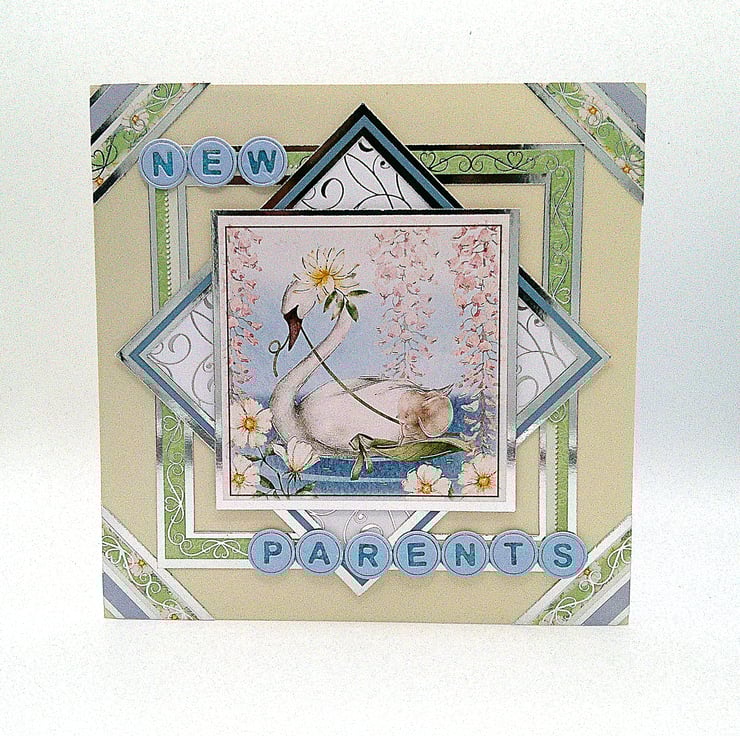 The sentiment on the front of the card reads 'New Parents' and the inside of the card has been finished off with an insert which has been stamped in black ink with the sentiment 'Embrace the magic of new beginnings the best is yet to come'