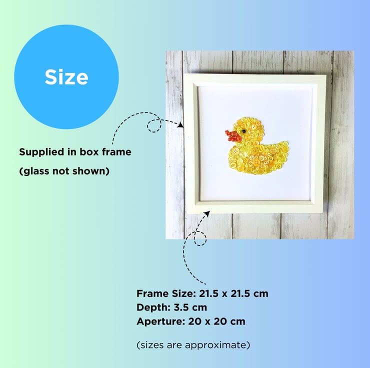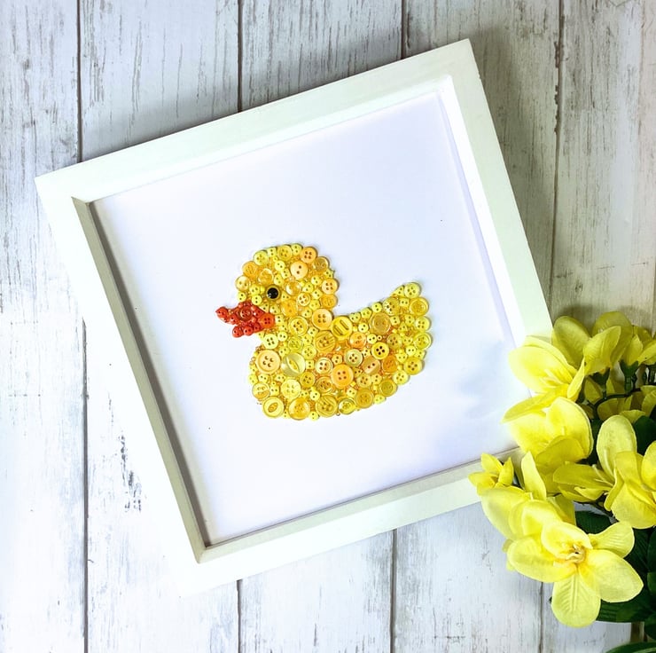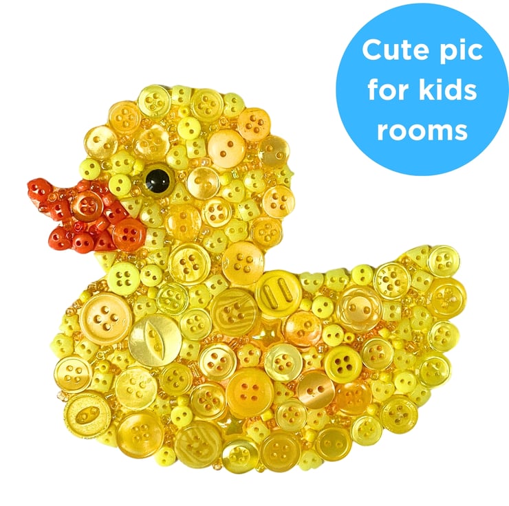 Every little one loves their rubber duck. This cute and colourful mosaic artwork, made from buttons beads and bobs will bring a splash of colour and joy to their bedroom or nursery walls.