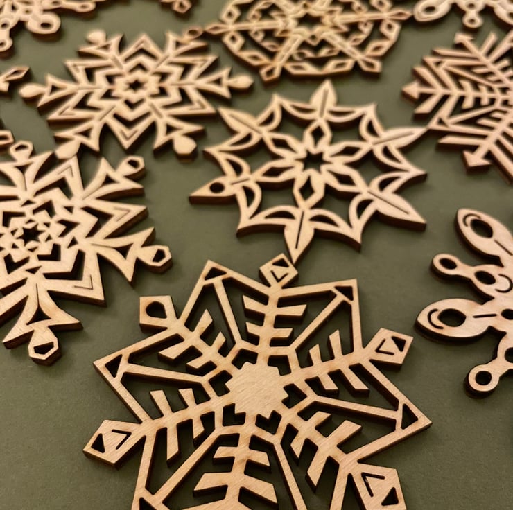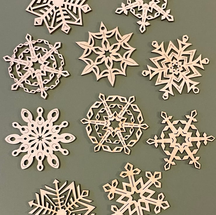 PERFECT IMPERFECT snowflake decorations. These are all early drafts of the new designs I launched last year, They are all different as I generally cut one sample of each version of the design to test it out. This listing is for a random selection of 3 different designs from the collection shown in the photos.