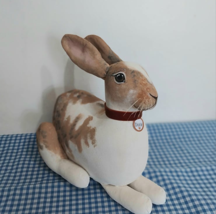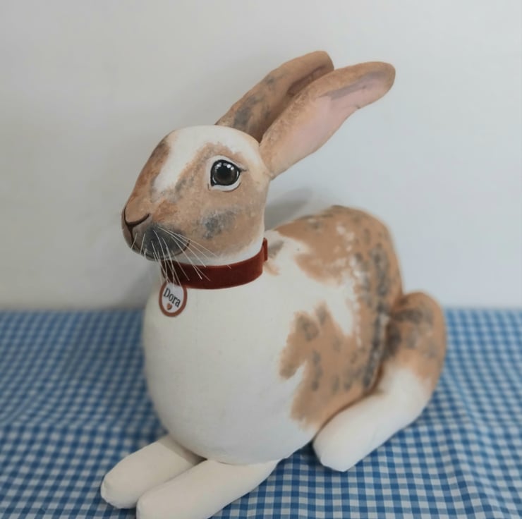 Bunny rabbits are made from heavy duty cotton calico cut from my own hand draw pattern. Filled with soft hypoallergenic fibre stuffing and a lined kiln dried sand bag for weight.