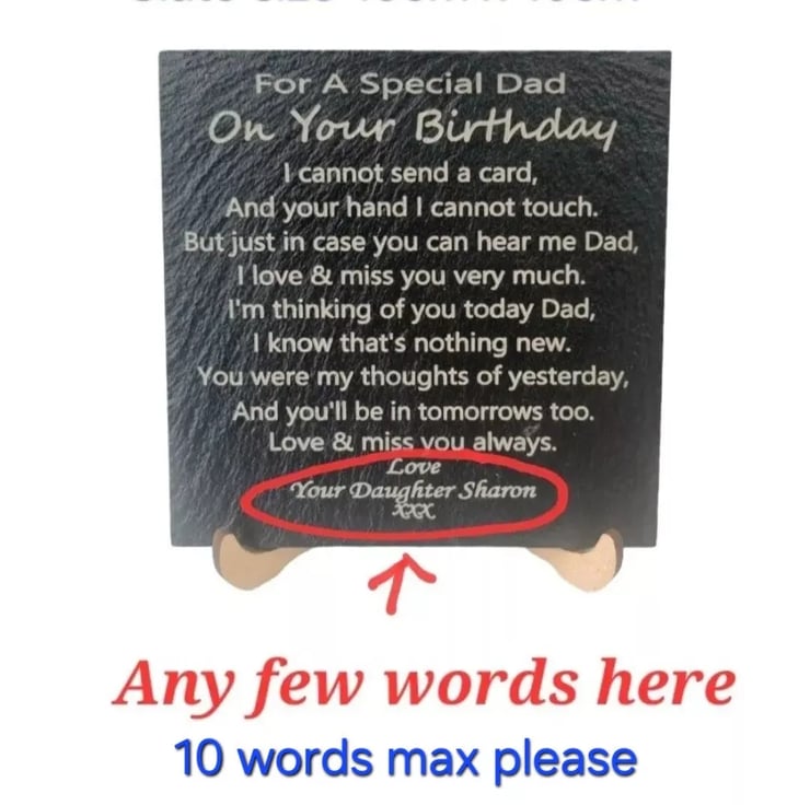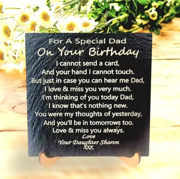 A special poem memorial slate/coaster plaque for Birthdays