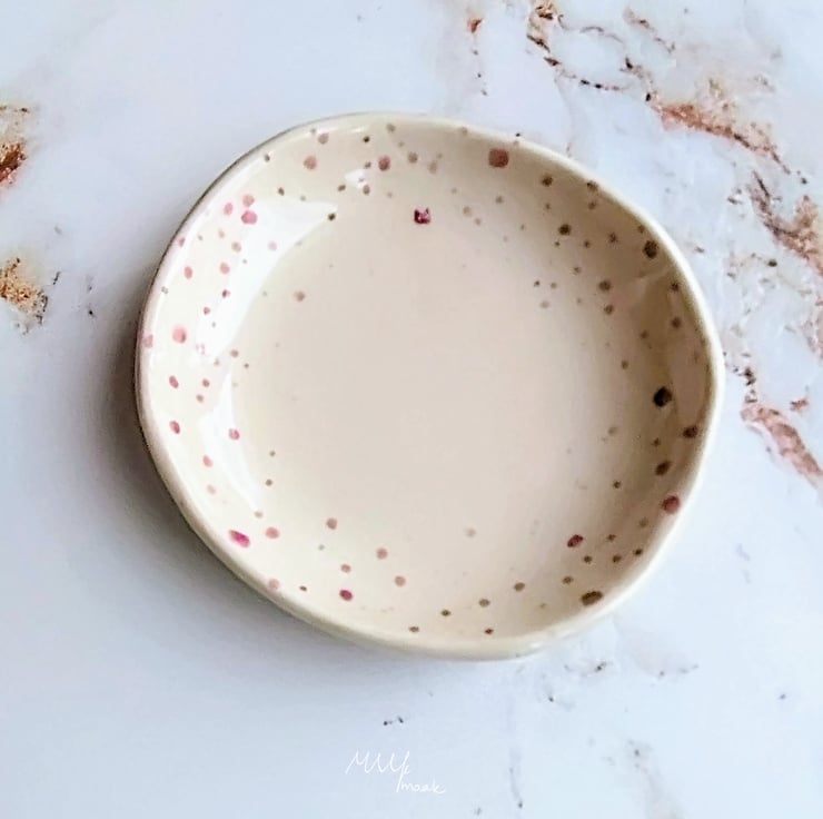 This is a handcrafted, flat-bottom mamezara—a small plate similar to a saucer but even tinier, with a diameter of under 12cm.