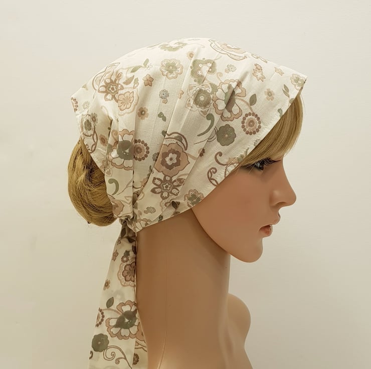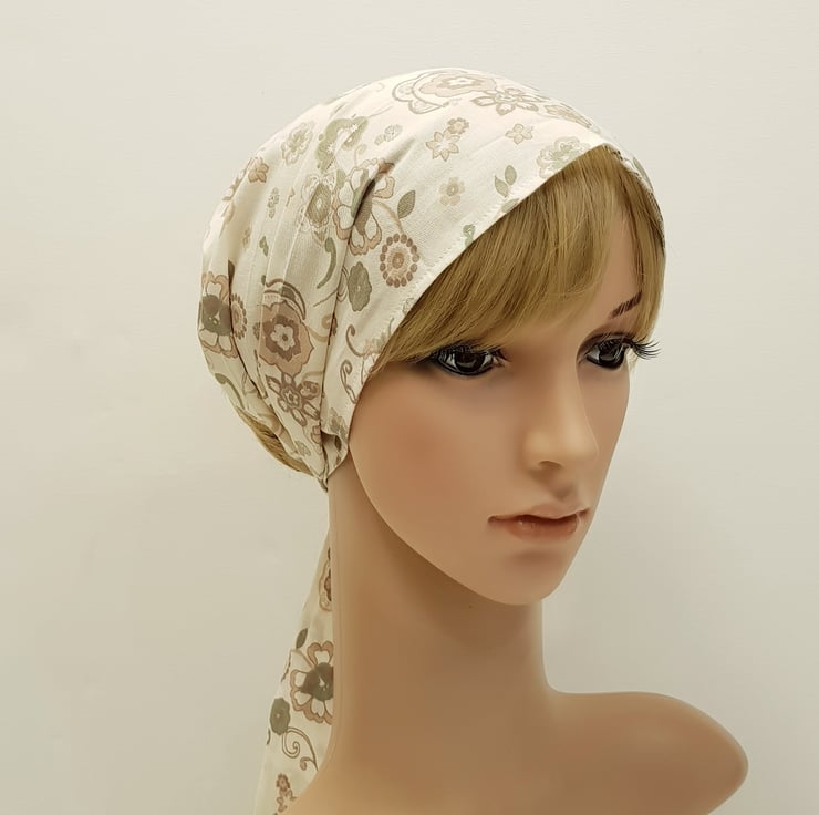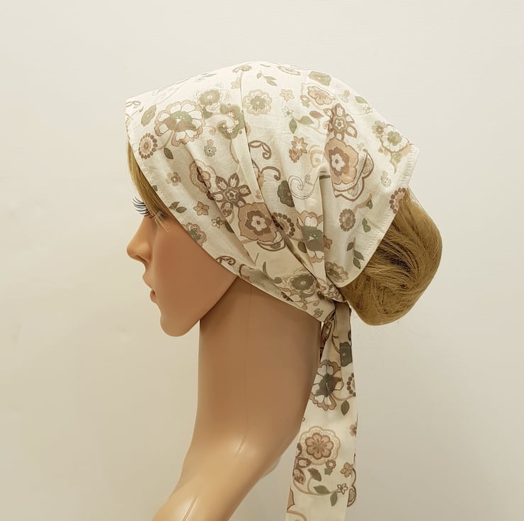 Women's floral cotton hair scarf , wide self tie hair wrap, summer head scarf.