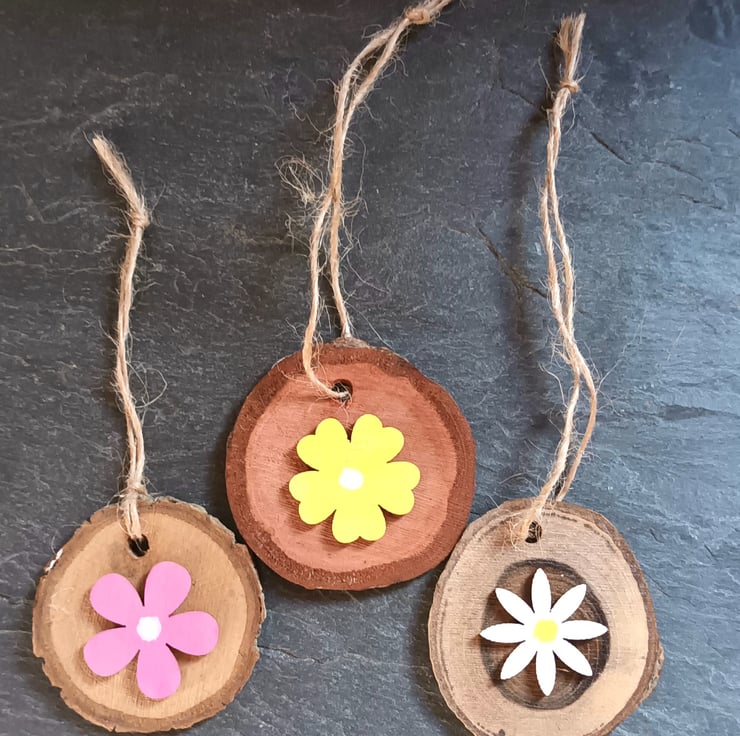 These are handmade from wood slice offcuts from my workshop. Some have been stained and others left natural.