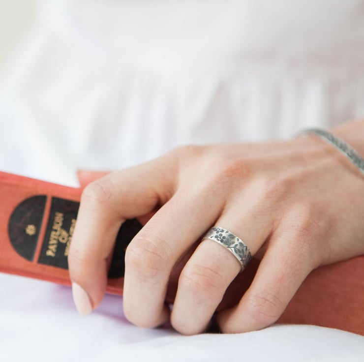 Made in Kent entirely with recycled sterling silver you’ll amaze your eco conscious partner. The oxidised silver finish gives a hint of by gone days when romance was at its greatest. The classic design of this silver ring means it will be loved forever.