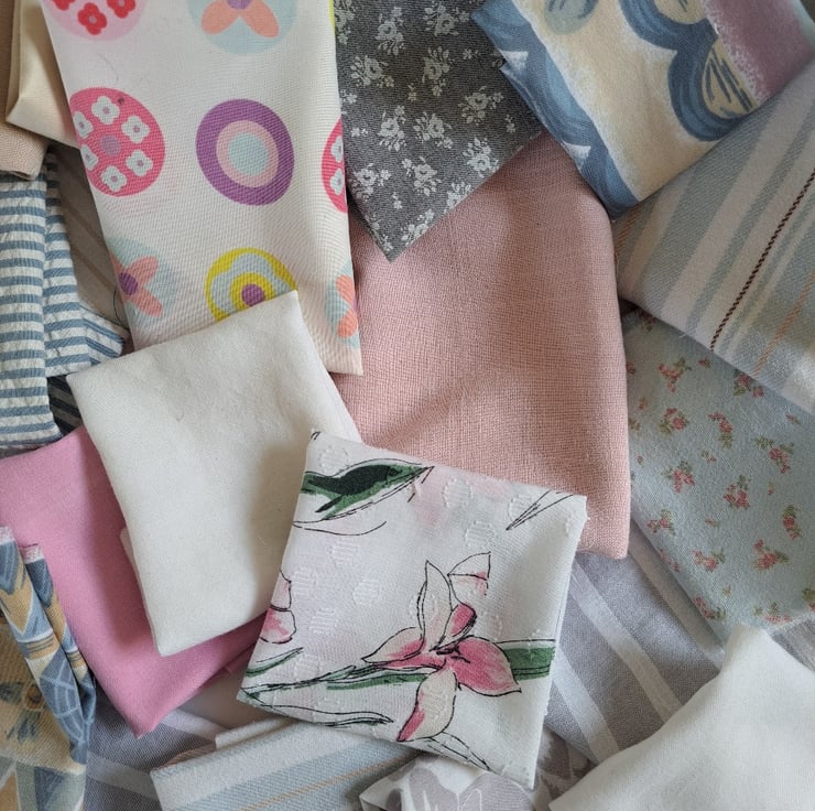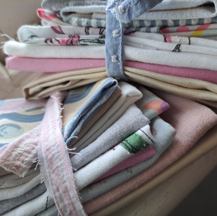Shirts might fade a bit after a few too many boil washes but that doesn't mean the end of the road. Their fabric is just right for so many projects which require a bit of character. These bundles contain approximately 12 pieces of rescued and repurposed cottons and linens, with age-softened textures and gently blurred colours. How glorious a quilt would look in these faded hues.