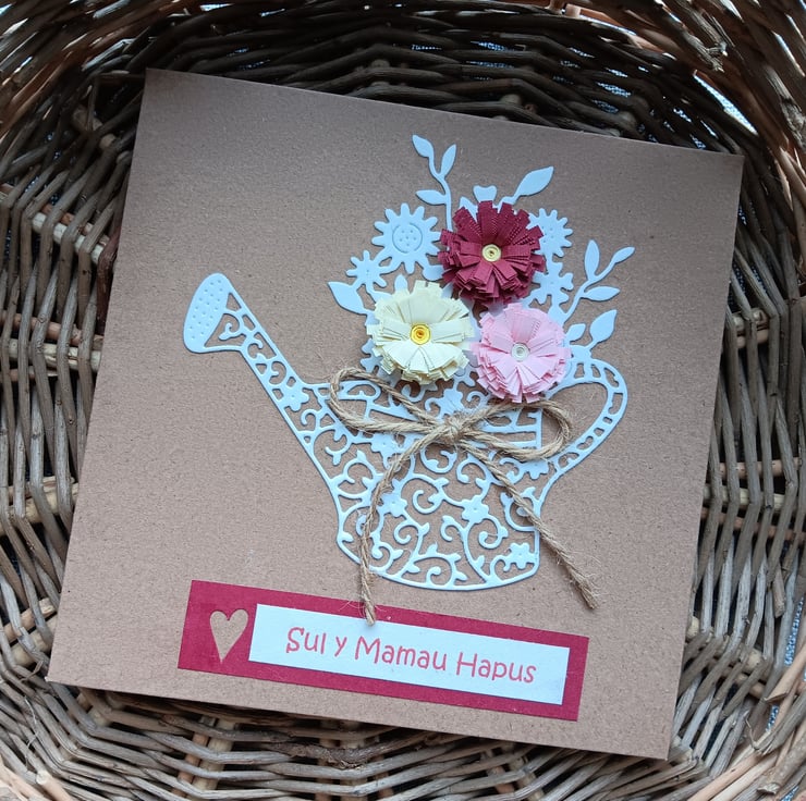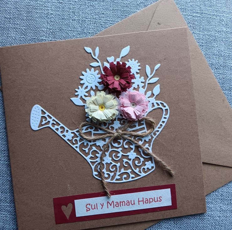 Beautiful handmade card with Welsh Greeting to with a special Mum a Happy Mother's Day.