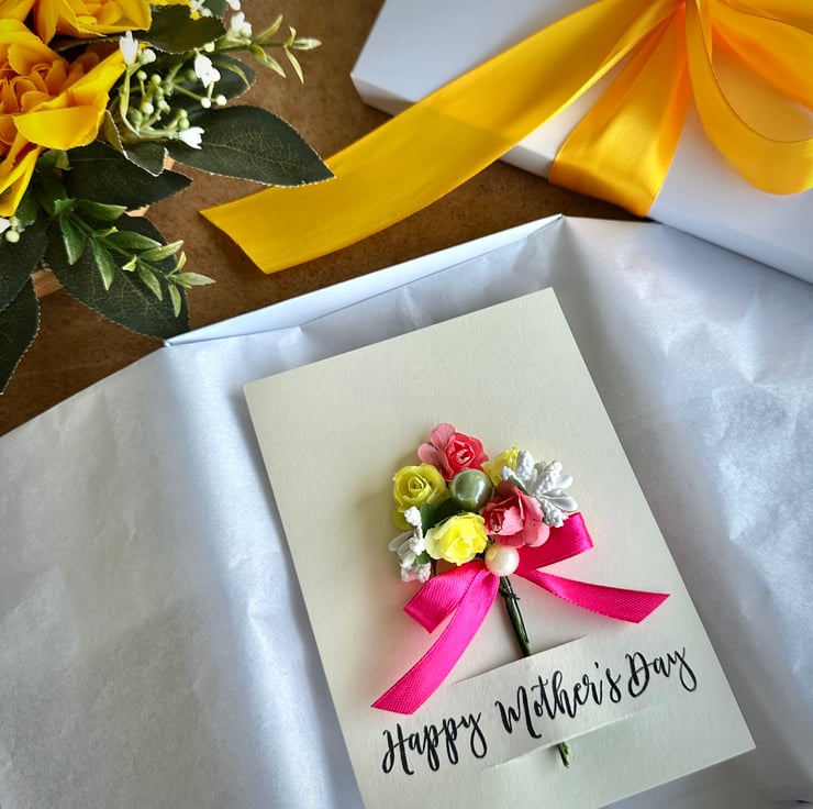 Designed with delicate paper flowers, an elegant ribbon and a heartfelt message, this card is a beautiful keepsake your mum will cherish forever.