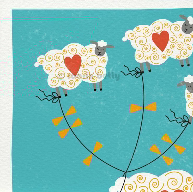Up In The Clouds, whimsical, fun sheep print, original Giclee print