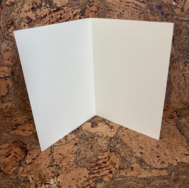 Made from A6 recycled cream 300 gsm card with a square picture window 6cm x 6cm. Each image is singular, printed on 180 gsm white Bristol Paper using recycled ink and non toxic eco friendly glue.