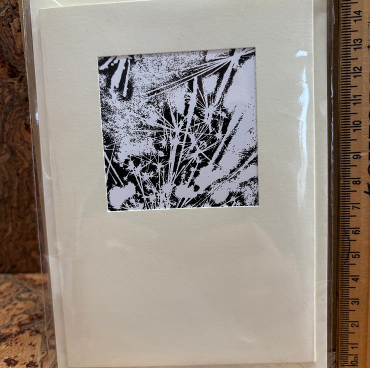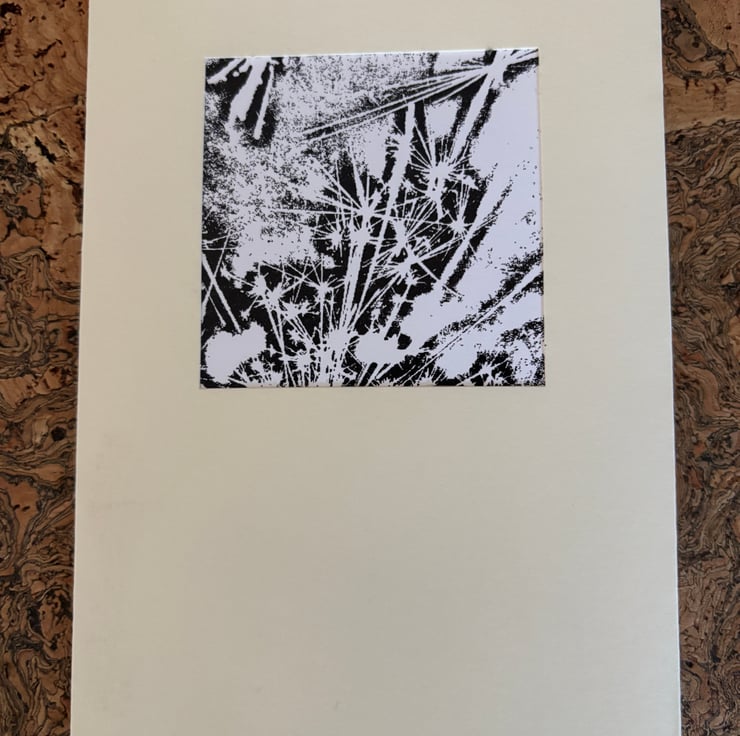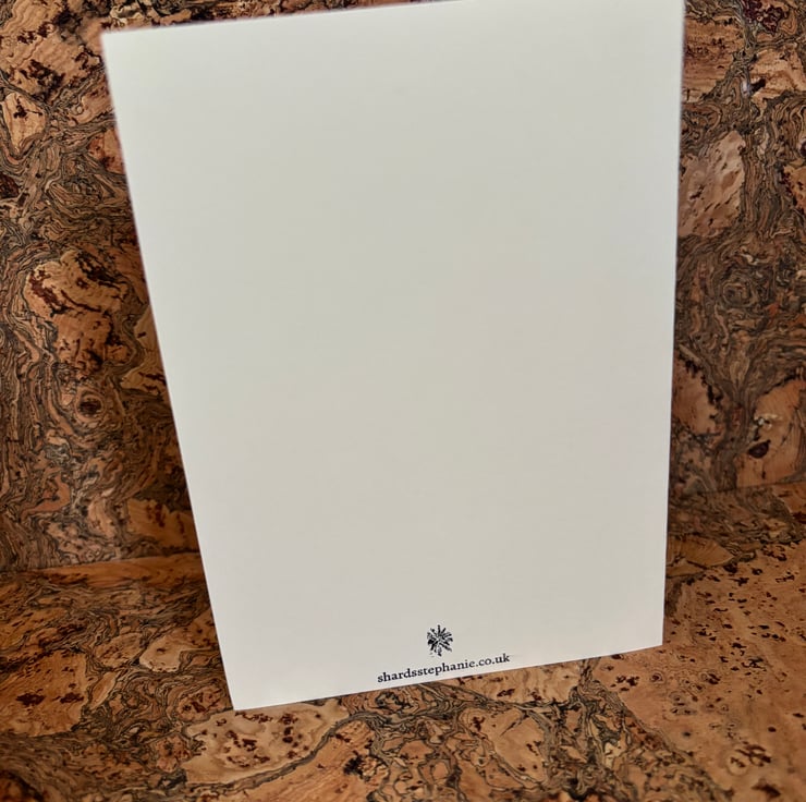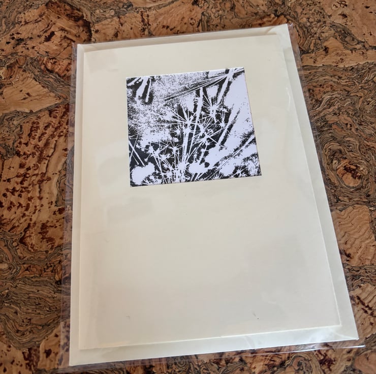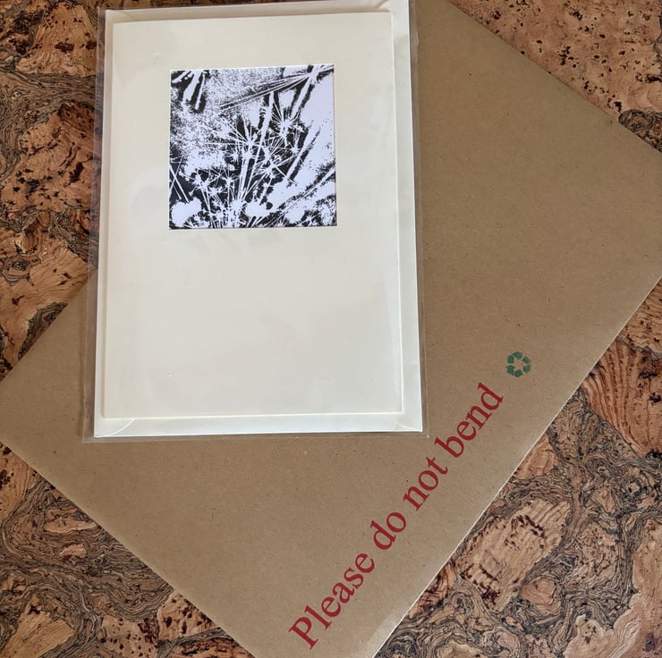 I love to photograph the everyday from different angles and try to notice things that might otherwise be missed. Each card print is unique, one of a kind, produced from a photograph, scanned, adjusted and resized. Printed on 180gsm recycled Bristol board either using eco friendly ink or thermal ribbon which is re-used or recycled. The whole process is a creative experience, I never start out with a finished idea but instead allow the piece to naturally form.