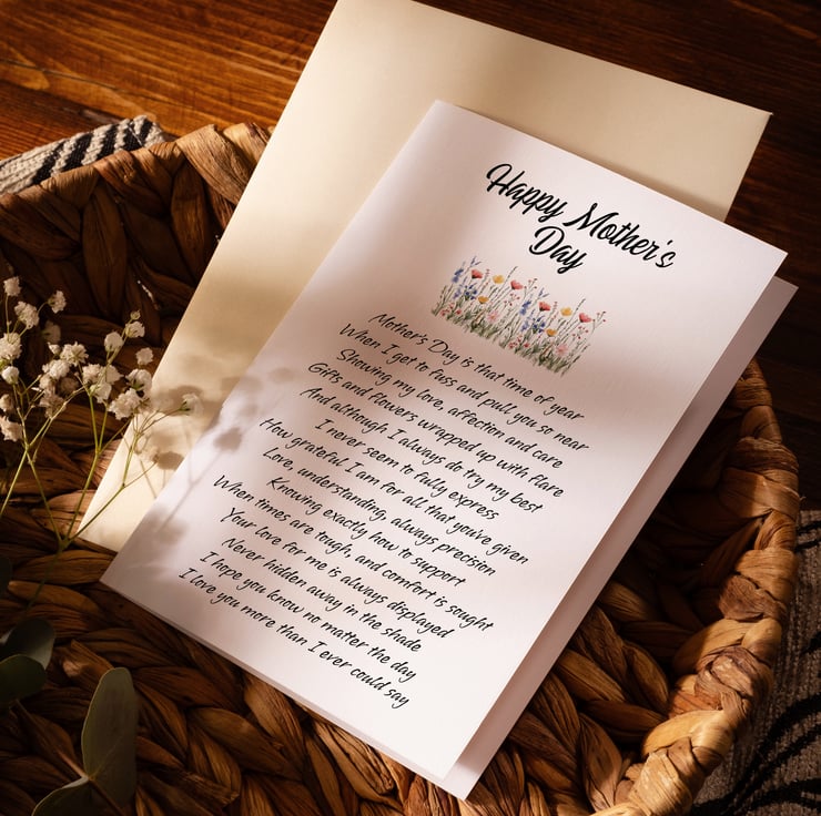 Printed on 255gsm hammered card. White envelope and biodegradable cello bag included.