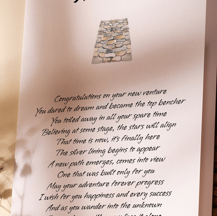Printed on 255gsm hammered card. White envelope and biodegradable cello bag included.
