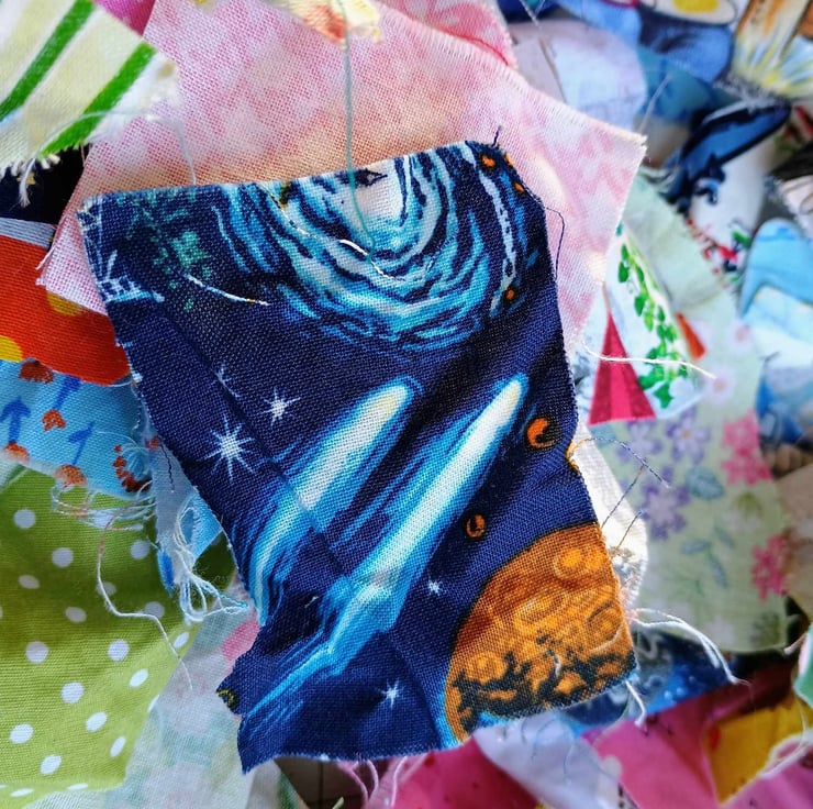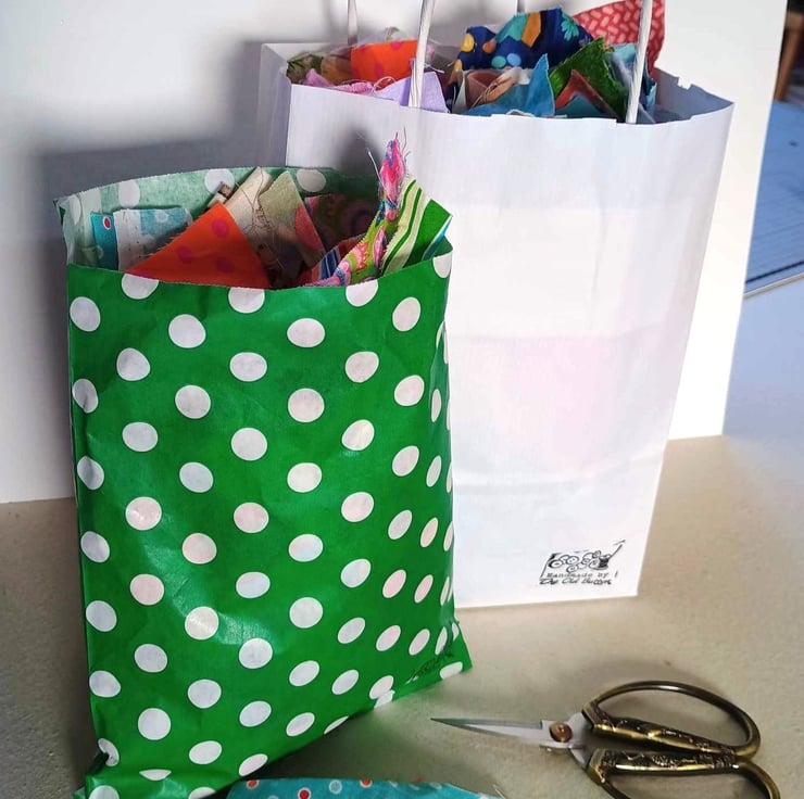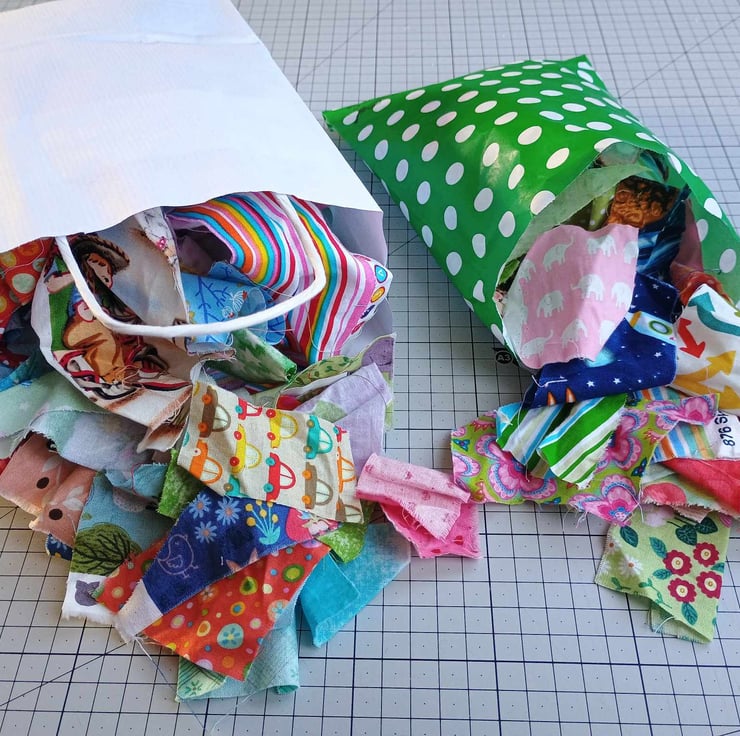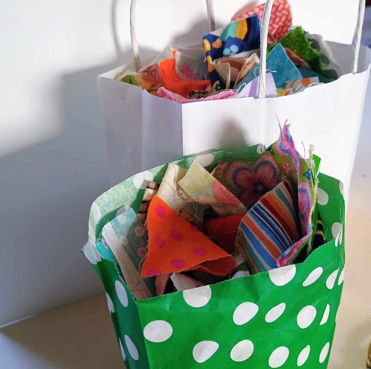What is a fabric crumb? These are the littlest offcuts that are just too beautiful to throw away. Often used to make crumb quilts, they have many other uses - including applique, textile art and card making. Or they can even be used by the kids for "sticking and gluing" activities.