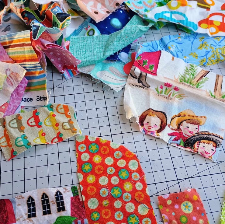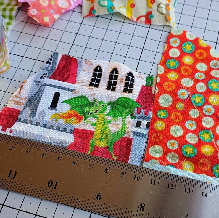 Quilting cotton fabric crumbs, in fun kid's prints.