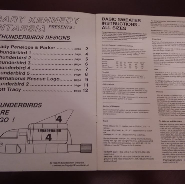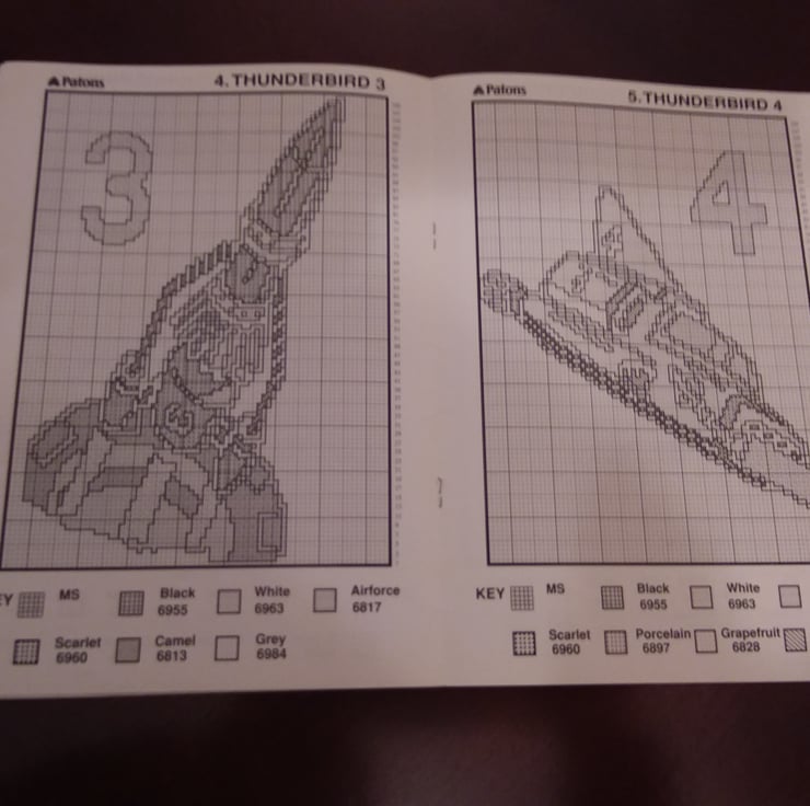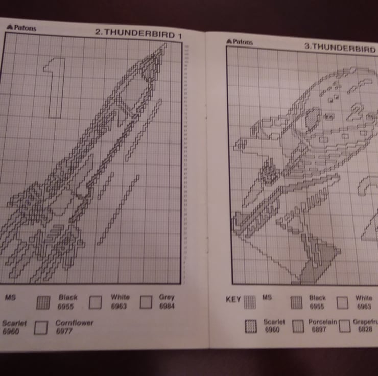 Vintage thunderbirds knitting patterns by Gary Kennedy (intarsia). 1992