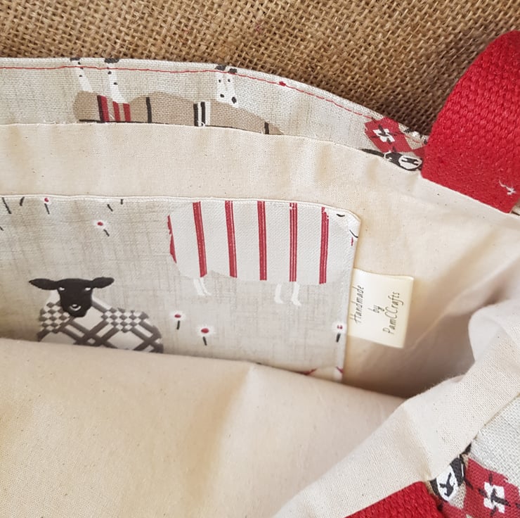The bag is fully lined with a cotton calico and has an inside pocket.