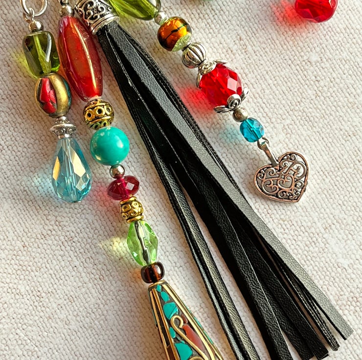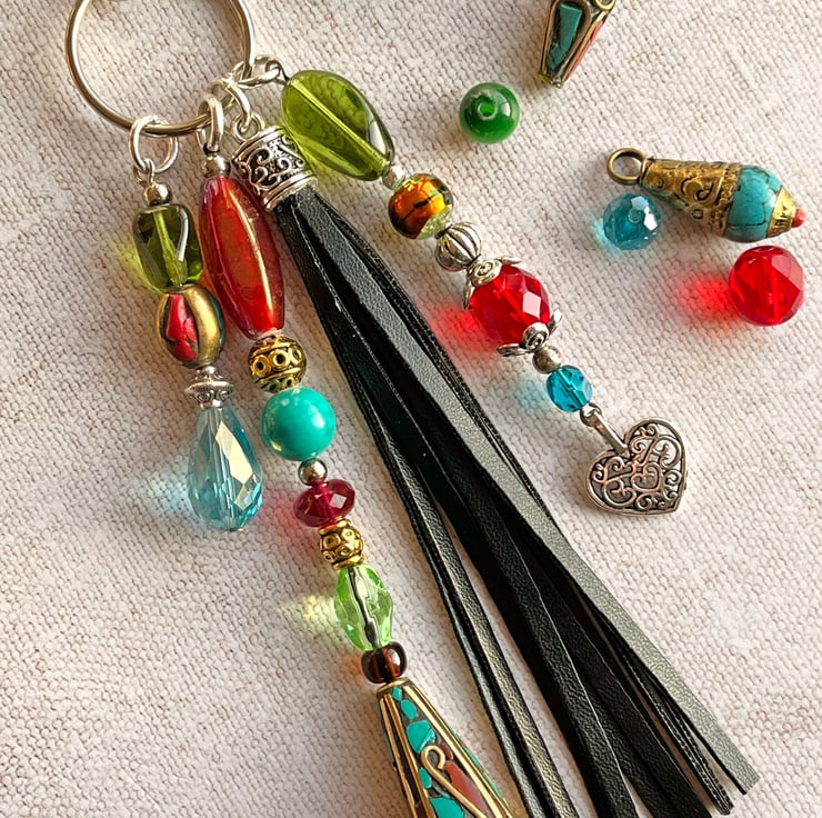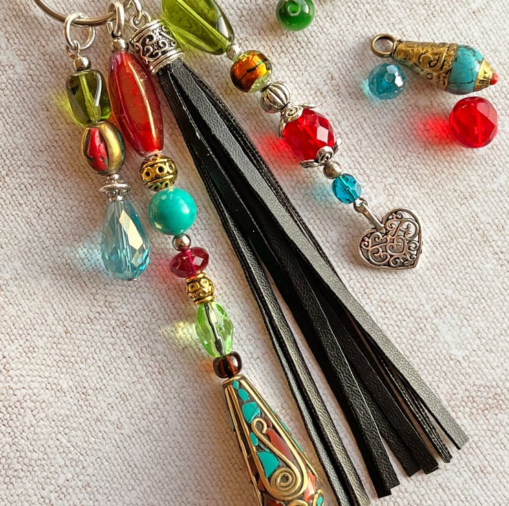 This boho bag charm has a pretty mix of colourful beads and would brighten up any bag.