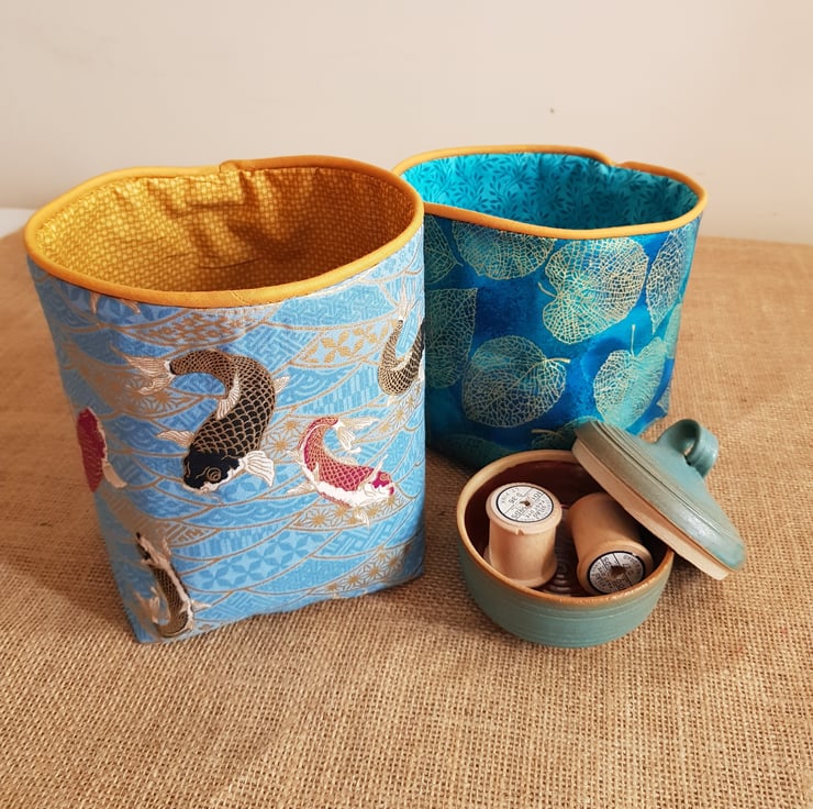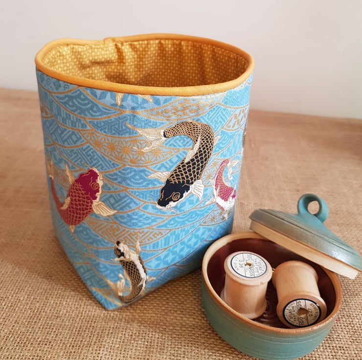 I love using up remnants of fabric and this storage pot has made good use of some I have had for a while