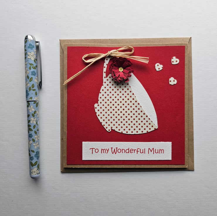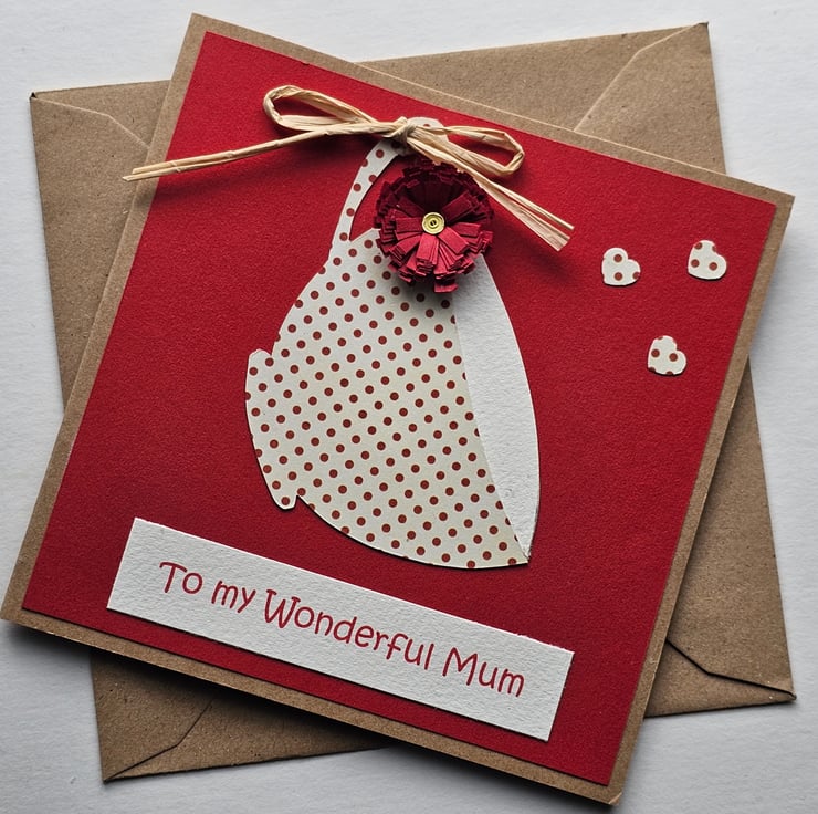 Red Handmade Teacup Card for Mum with Quilled Flower Perfectly Imperfect
