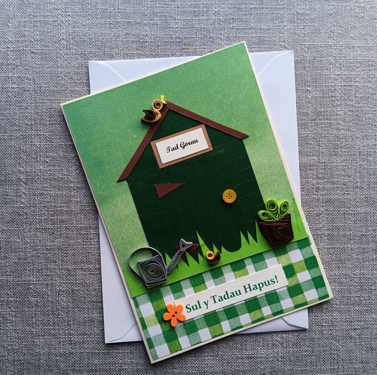 A unique handmade card for Father's Day with Welsh text. The reason it is in the seconds sale is that it was made a few years ago and stored but otherwise, there is nothing wrong with it.