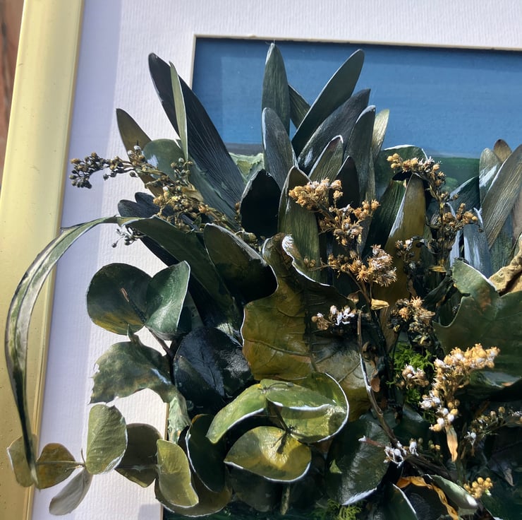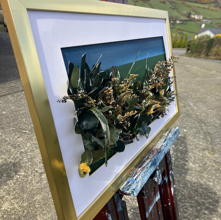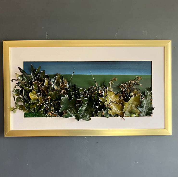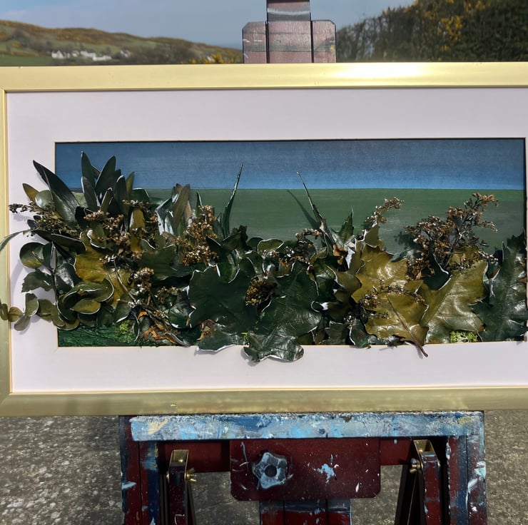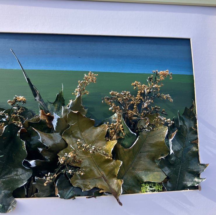 Acrylic, leaves (varnished) on board