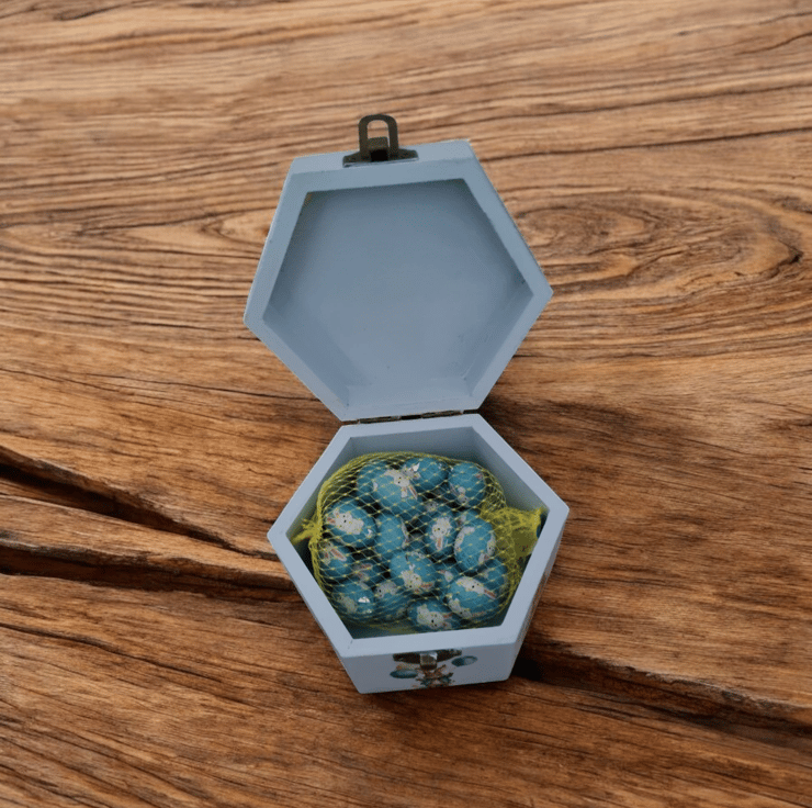 This comes with a small bag of solid milk chocolate eggs, the perfect Easter gift for that special someone and can be used as a keepsake box after.