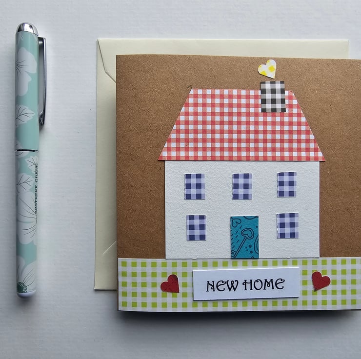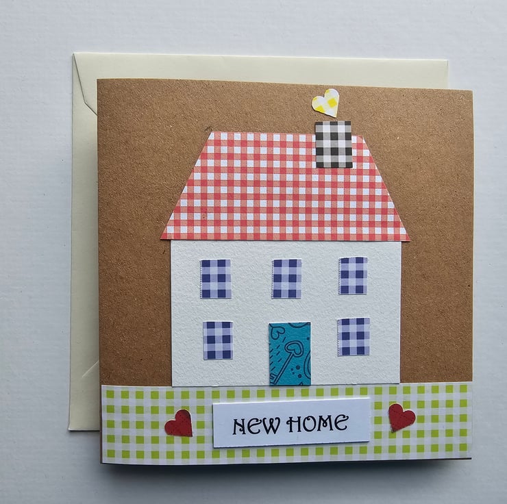 Gingham Paper Patchwork New Home Card 5" x 5"