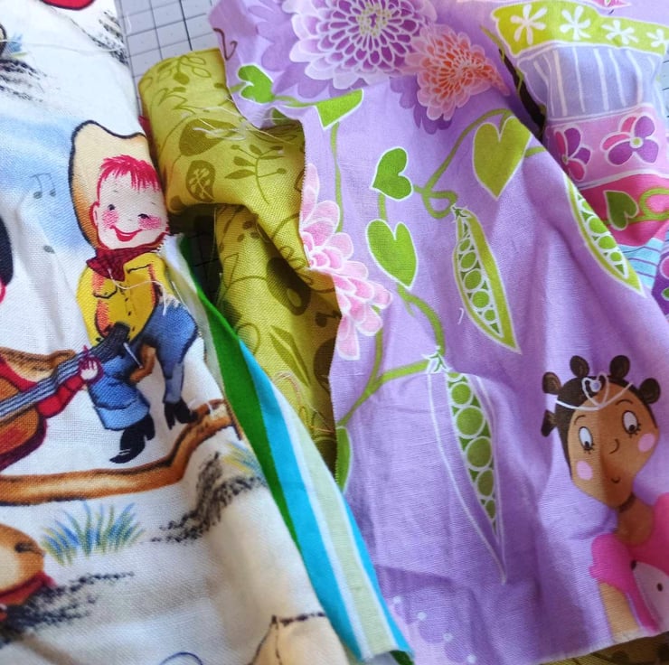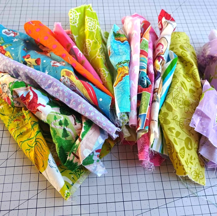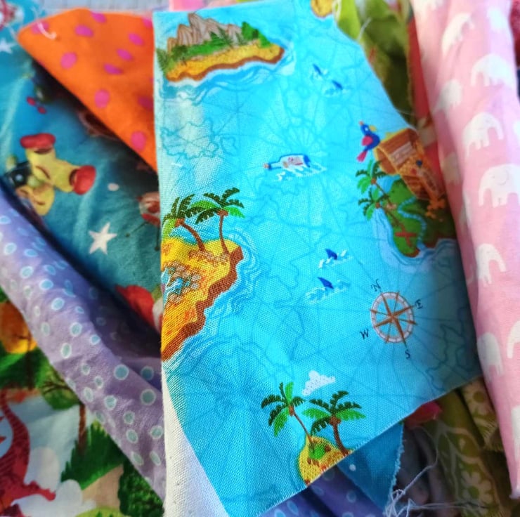 A fabulous bundle of quilting cotton fabric scraps, in fun kid's prints. Ideal for all sorts of craft uses, including applique, mini bags, bookmarks, collages and card making. Or even use them in a crazy patchwork quilt.