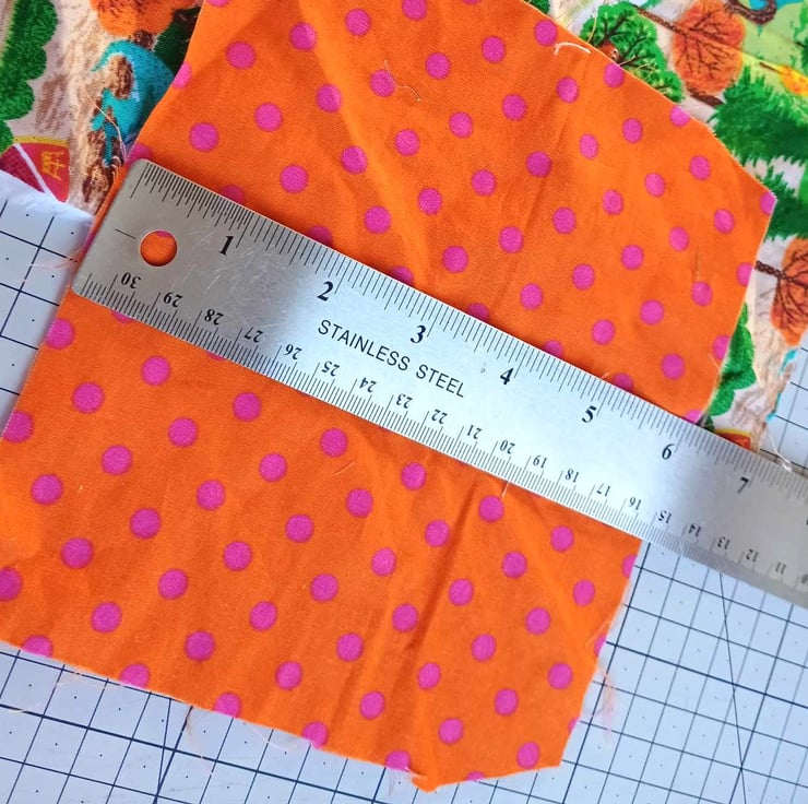 They are fairly big scraps, ranging in size from 6 to 10 inches - a few may be larger. Most are roughly rectangular or square, with a few triangles or more irregular shapes.