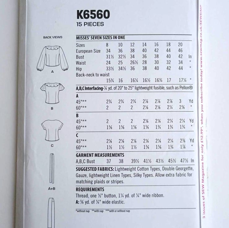 IMPORTANT - this is an American pattern, so sizes will differ from what we are used to seeing in the UK. Please check your actual body measurements against the size chart on the envelope before buying, and remember to use the most appropriate size/s when cutting out.