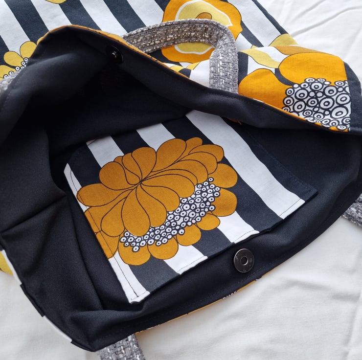 Vintage 1960s 1970s floral print fabric shoulder tote bag