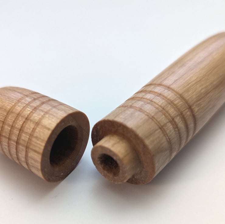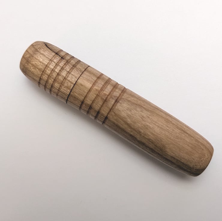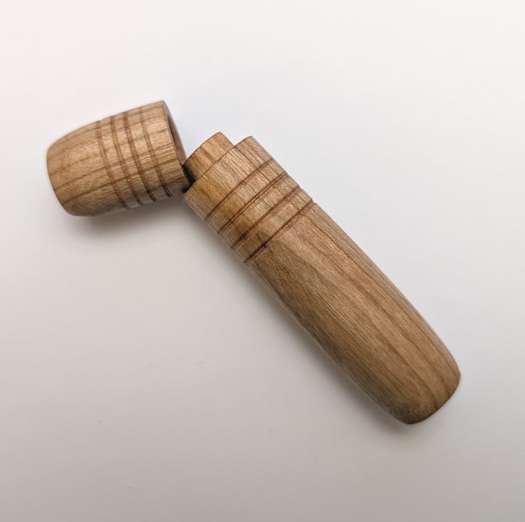 A hand-turned needle case, turned from maple. The lid is a suction fit (will not fall off) and the overall finish is smooth and warm.