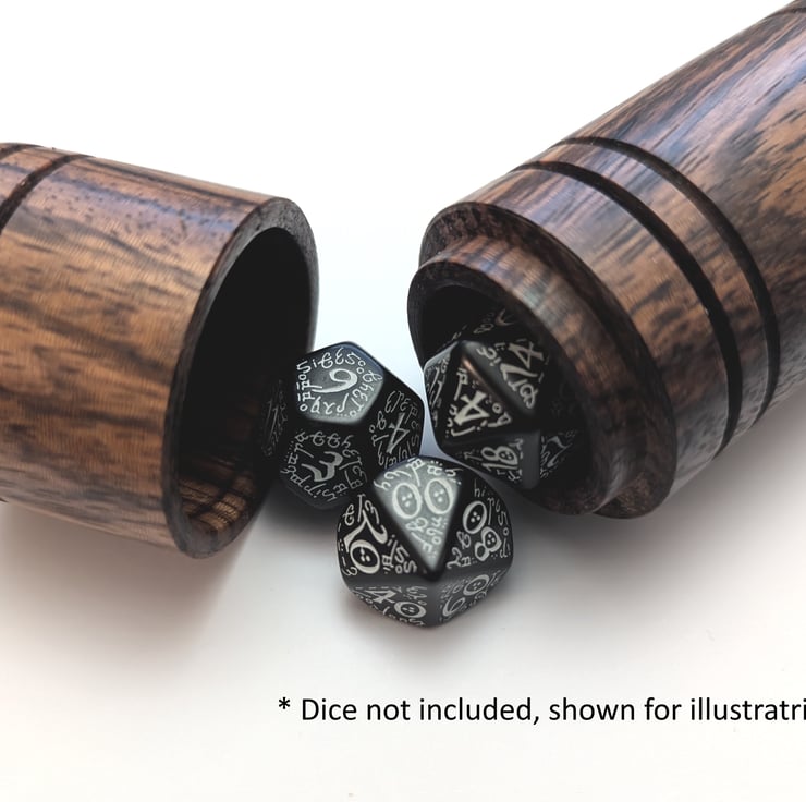 This items makes an elegant and natural way to carry a set of dice. The lid can even be used as a dice rolling cup and is easily large enough to accommodate a d20.