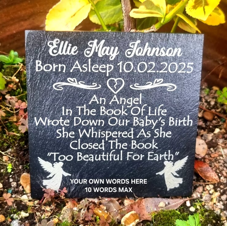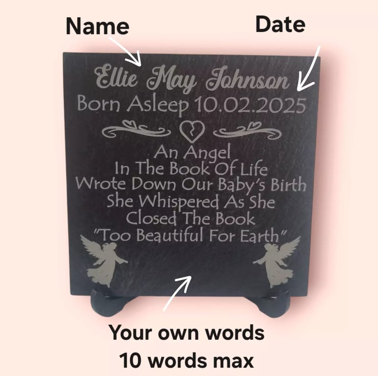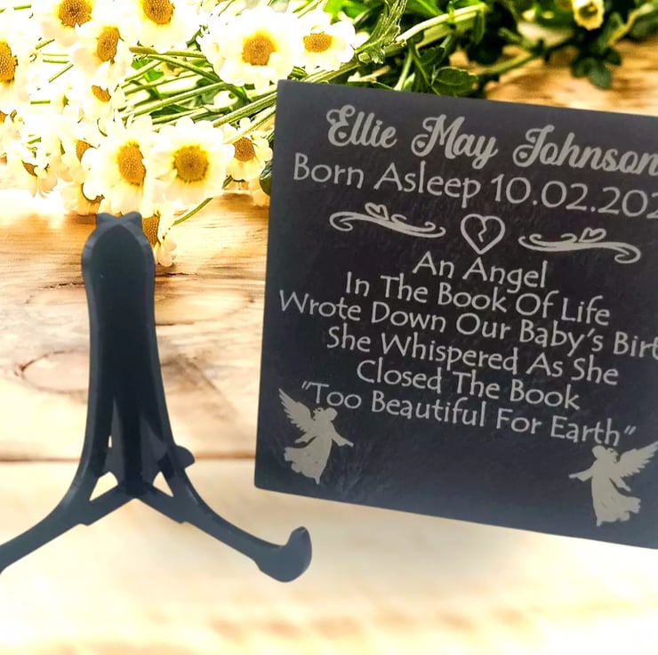 A special poem memorial slate/coaster plaque for a born sleeping baby.