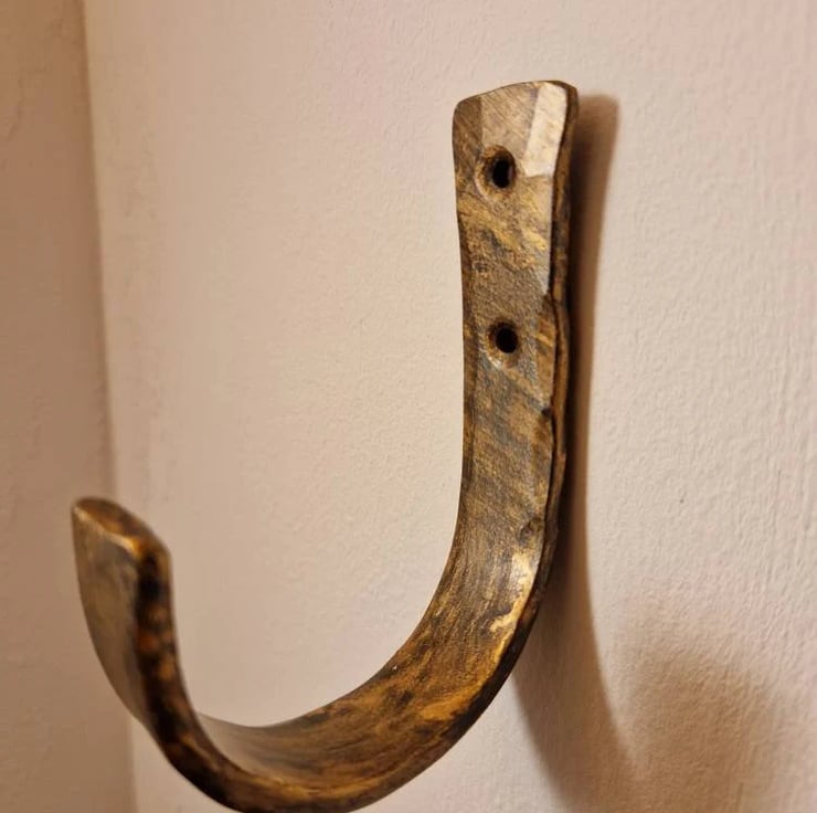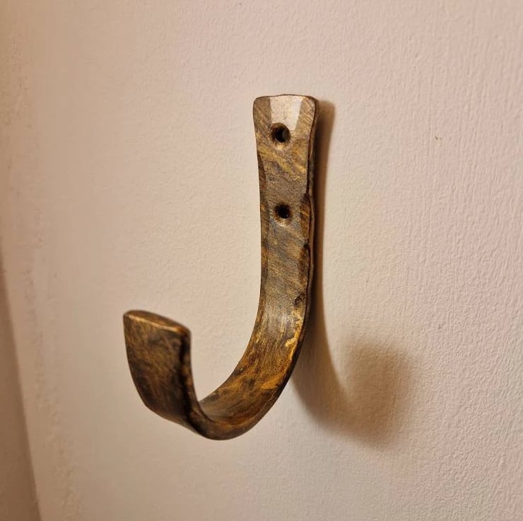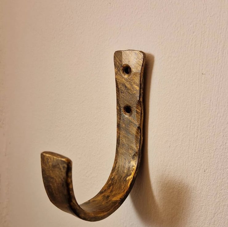 These hooks are hand forged using traditional blacksmithing techniques and have softened hammered edged to enhance the hand made look.