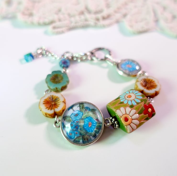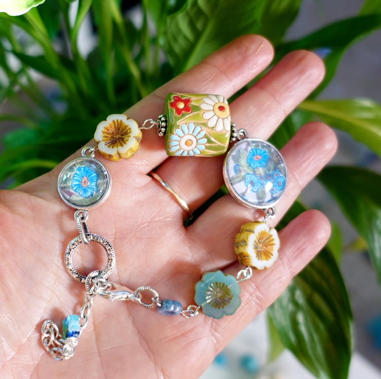 I always say that my jewellery is the perfect gift for gardeners and this bracelet is no exception. With its floral-themed beads and art connectors can make the perfect present for someone who likes plants, flowers and nature.