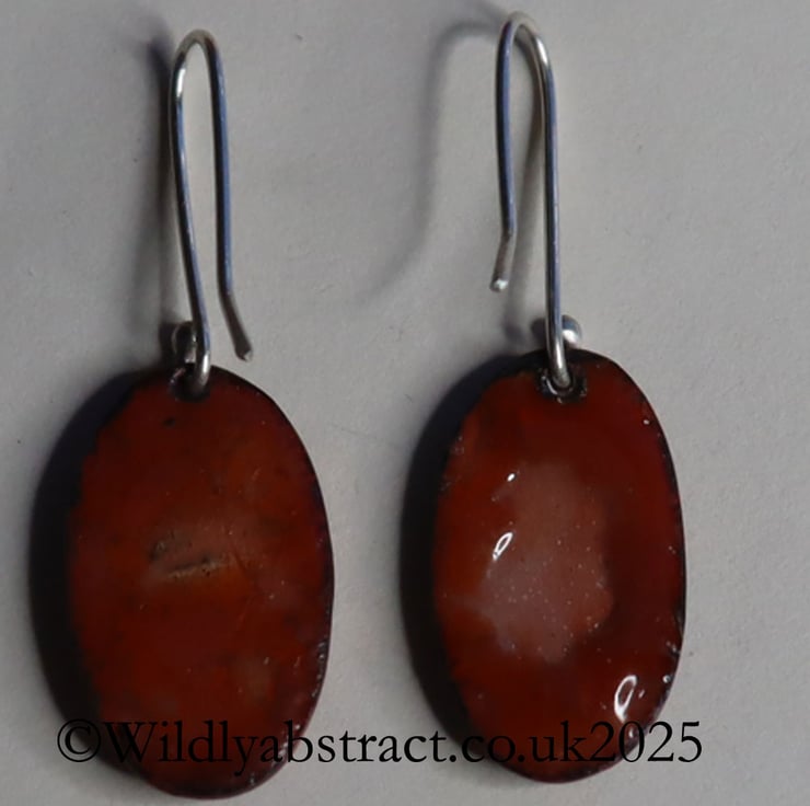 Oval Kiln-fired orange enamel earrings