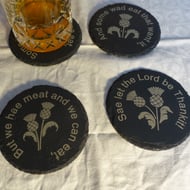 Set of 4 natural slate coasters. Each is engraved with a dragon and a different piece of Welsh wisdom;