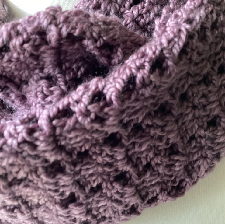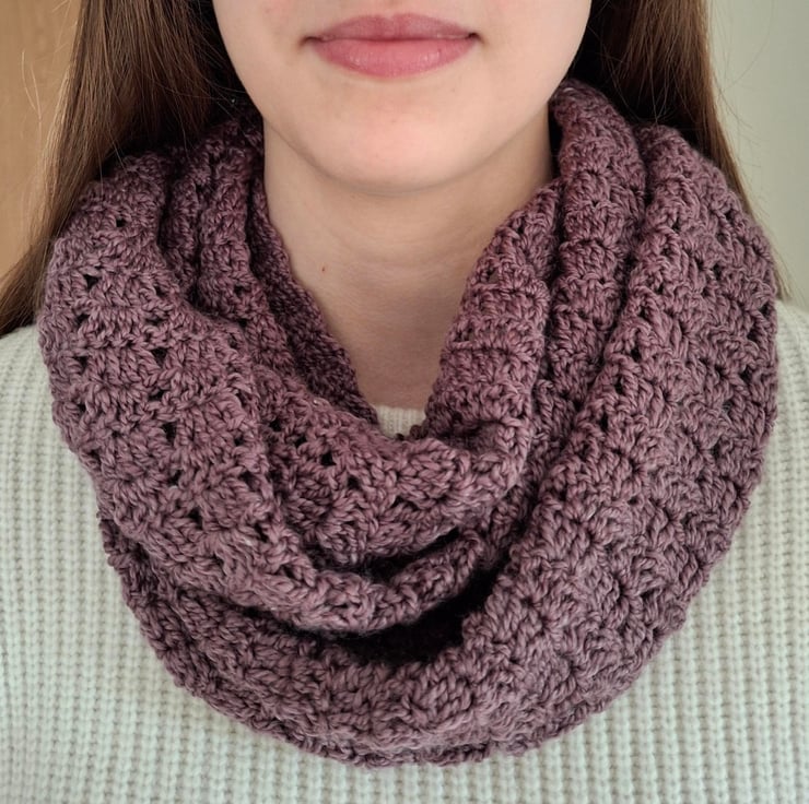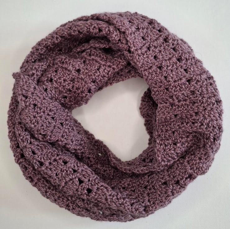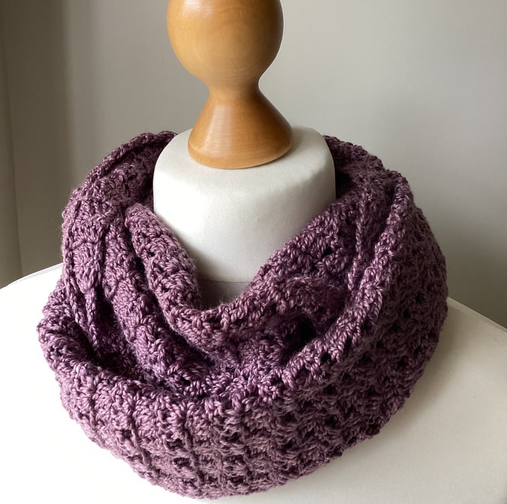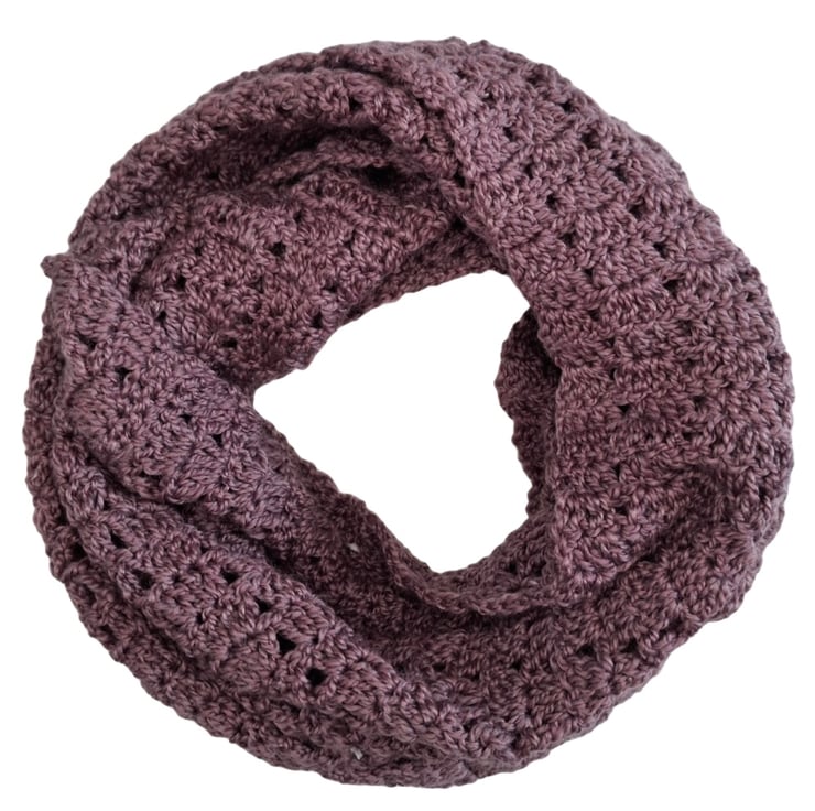 Lacy infinity scarves are crocheted in 4ply yarn.