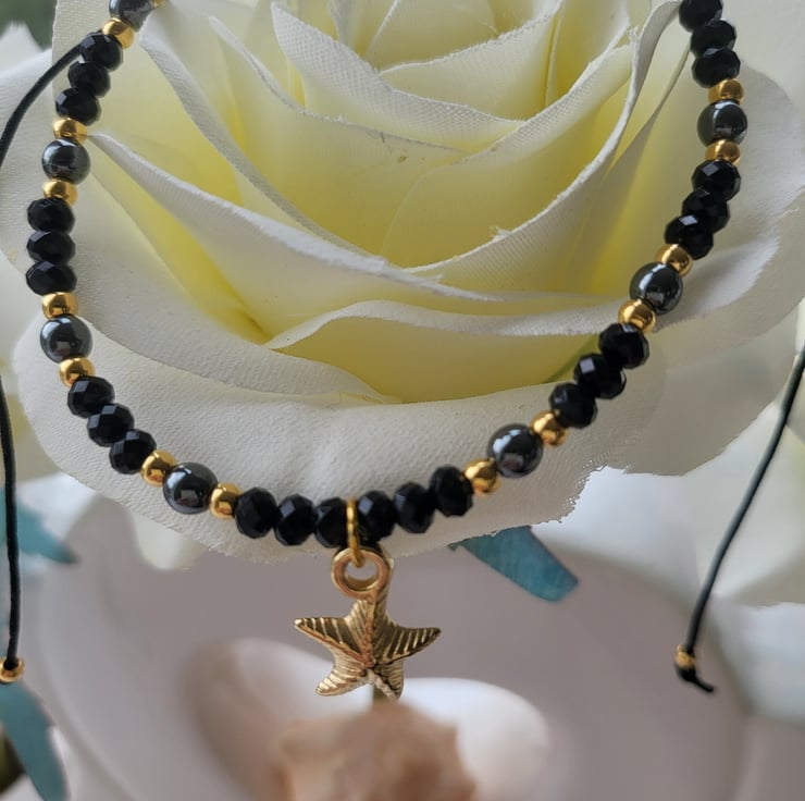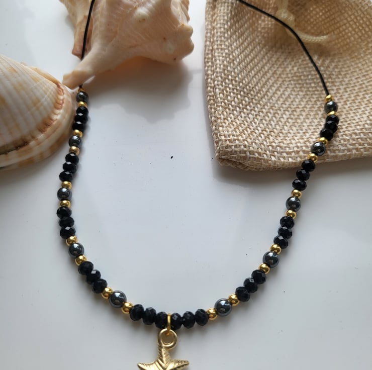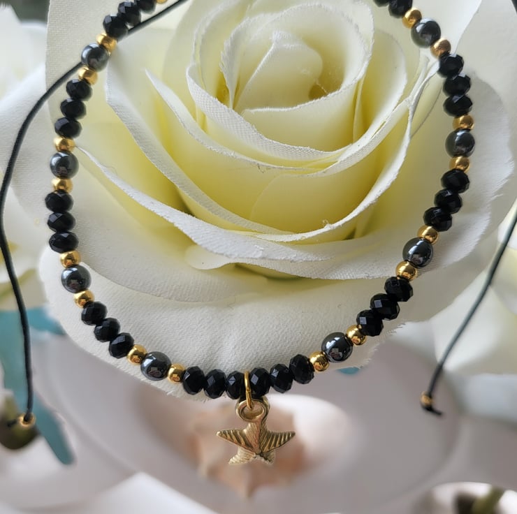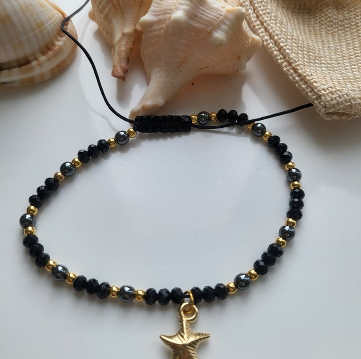 Natural hematite stone and gold beaded anklet is a wonderful blend of elegance and coastal charm.