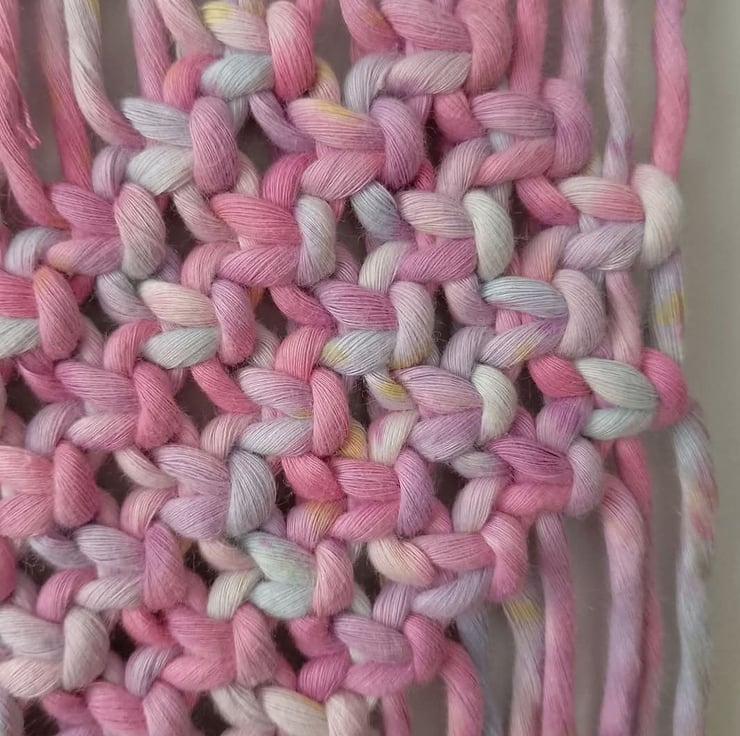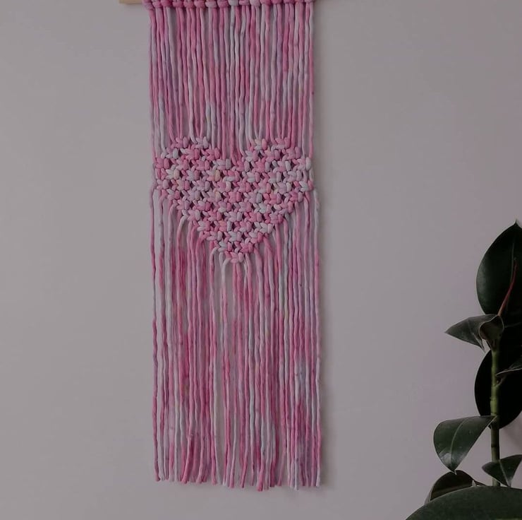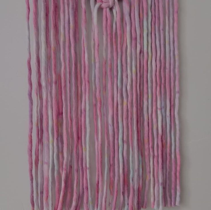 This heart wall hanging has been made with a stunning pink cord! The cord has shades of pink, lilac and little speckles of yellow. It looks sooooooo pretty!