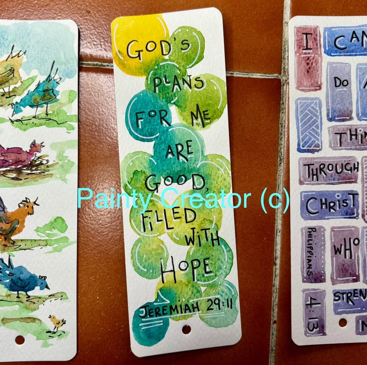 Individual bookmarks. Ribbons will be added. These are £5 each including FREE uk postage. Each original watercolour.